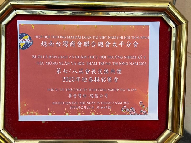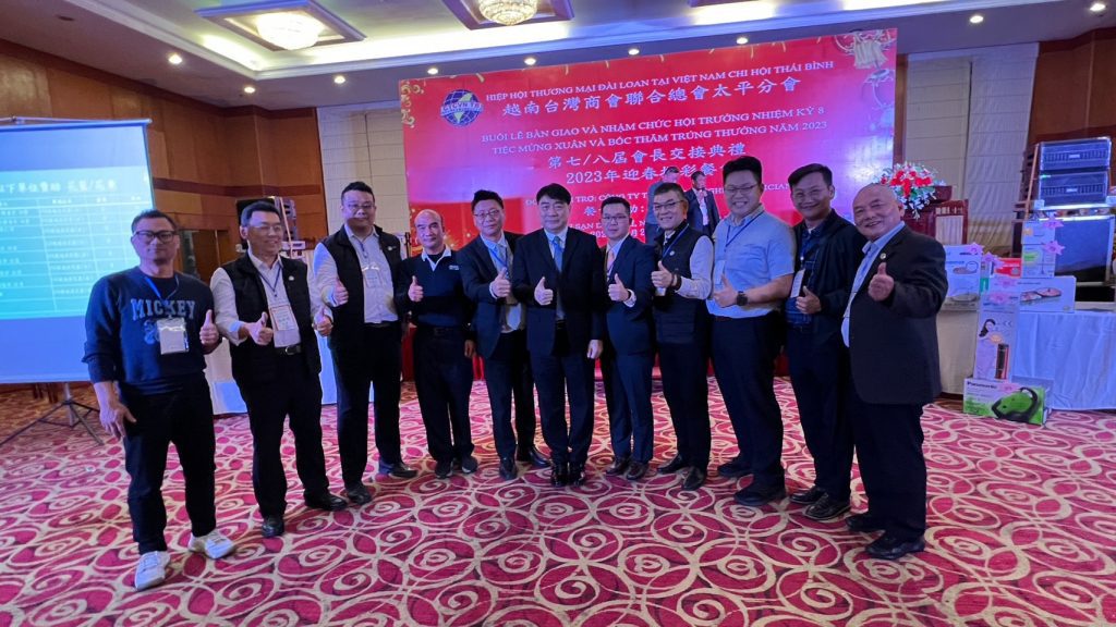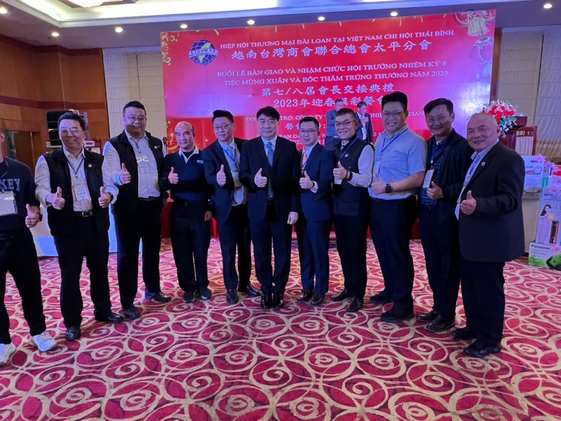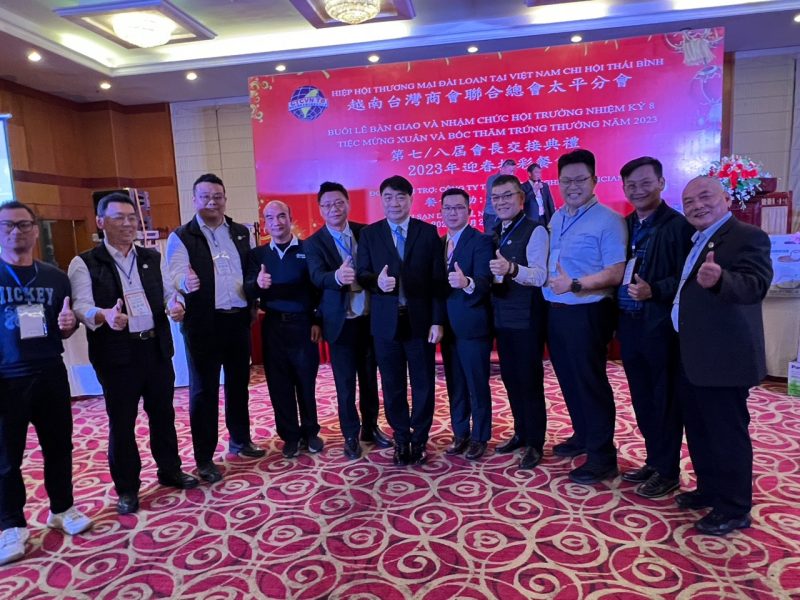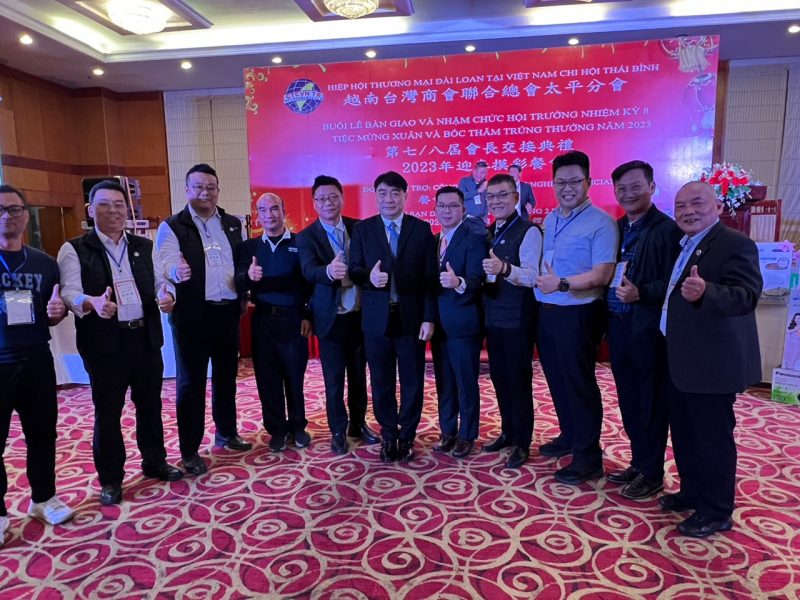 越南台灣商會太平分會第七屆、第八屆會長交接典禮暨2023迎春摸彩餐會,於2023年2月25日假太平石油飯店餐廳隆重舉辦,新任鄭閎元會長對太平商會貢獻良多且在亞洲台灣商會聯合總會擔任會職,歷練豐富因此被推舉擔任第八屆會長。駐越南台北經濟文化代表處石瑞琦大使及台灣事務委員會前秘書長蘇國俊、僑務委員蔡文瑞、越南台商總會簡智明總會長、高國華名譽總會長以及多位友會會長等貴賓均出席參與。