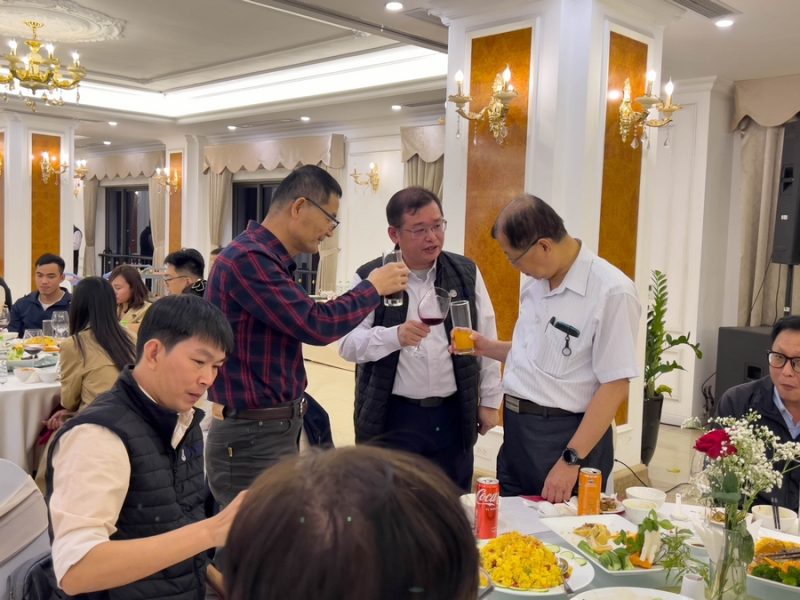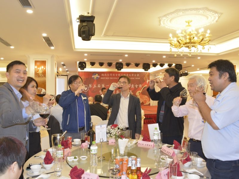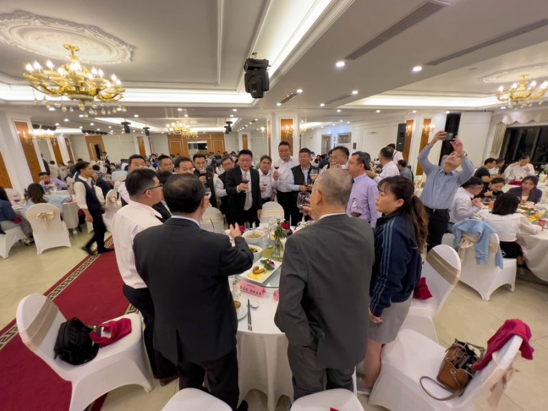 此外到場的貴賓還包含台灣貿易中心駐河內辦事處鄭旨廷主任、蔡寵恩創會長、越南台灣商會聯合總會林詩萍監事長、河內分會楊志文監事長、海防商會王坤生會長、太平商會鄭閎元會長、河靜商會葉富國會長、平陽商會陳水石會長、新順商會劉佳原會長、青商會陳靜璿輔導會長等各商會代表,此外越南新加坡商會施勇勝會長也首次參與北寧台商會的活動,場面熱鬧非凡。