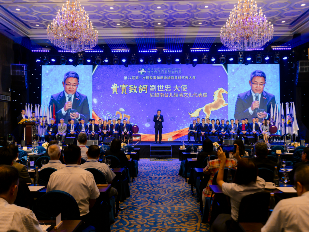 劉世忠大使則以「馬」字串聯台灣心、越南情,以風趣且充滿意義的「馬年成語」為大會賀詞。劉大使稱讚洪總會長「一馬當先、馬力十足」,並以「老馬識途」肯定其豐富的越南經驗。劉大使強調,越南台商的精神是「馬不停蹄、精益求精」,即便偶爾「馬失前蹄」,也能憑藉韌性「浴火重生」。