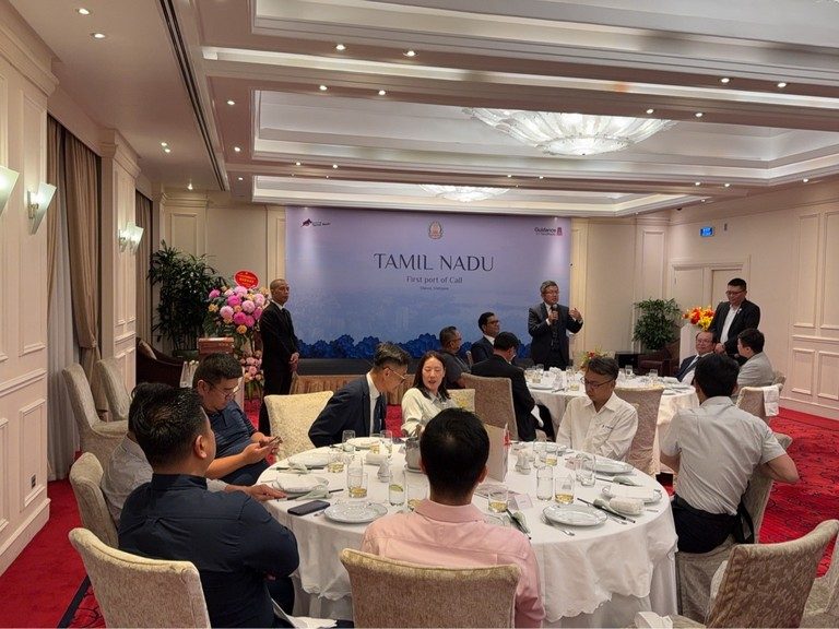 2025年5月17日,印度泰米爾納德邦(Tamil Nadu)工業廳率團訪問越南,並於河內 Sofitel Legend Metropole 飯店舉辦圓桌論壇與交流晚宴。此次活動聚集了各界代表,包括駐越南台北經濟文化代表處劉世忠大使、丁偉組長、蔡佩珊僑務秘書、外貿協會施懿恬主任,以及印度台商總會陳木騰副總會長、李哲瑜副總會長。此外,亞洲台商總會名譽總會長許玉林,越南台商總會總會長袁濟凡率領的越總團隊,以及由寧平商會會長劉俊麟帶領的代表團均到場交流。北寧商會則由會長林軒節領軍,與副會長盧炯輝、王大維、組長郭郁甫、秘書長周聖炫及多位商會理監事共同參與。