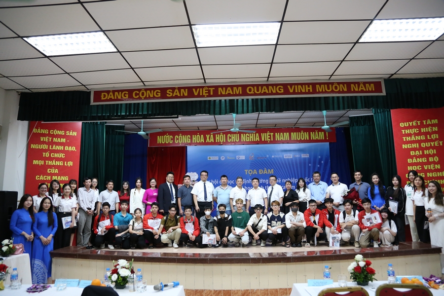 2024年5月27日,河內郵電科技大學舉行了一場名為「在職大學生的出國留學機會與國際職業定位」的座談會。此次活動邀請了來自台灣和韓國的學校單位和企業代表參與,北寧台商會的秘書長周聖炫和國際組組長郭郁甫也出席了此次活動。