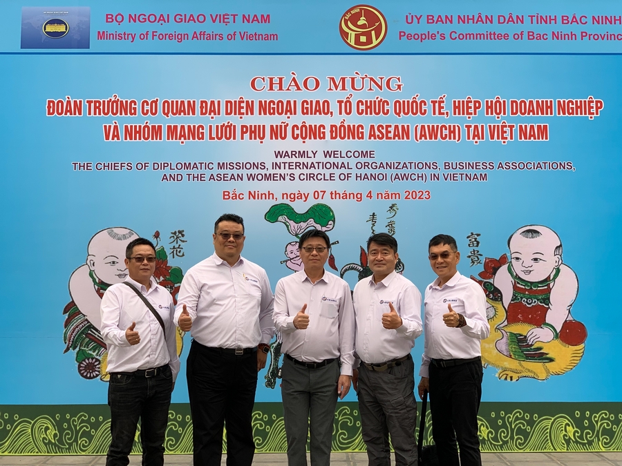 北寧台灣商會林軒節會長率領王大維副會長、周聖炫秘書長以及理事吳振赫與黃國裕,一同參與了這個具有文化氣息的活動,其間林軒節會長也特別向阮英俊介紹了北寧台灣商會,希望未來雙方能增加交流。